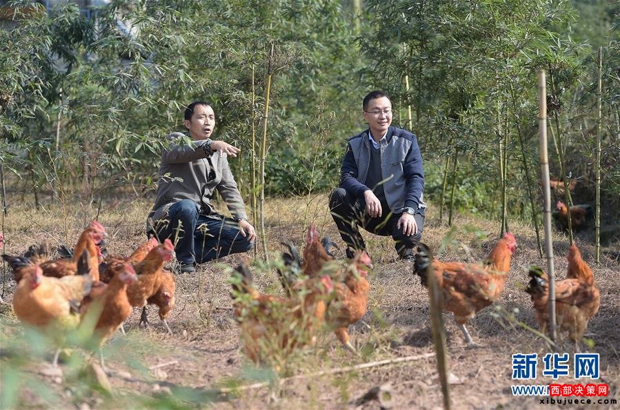 李寶強(qiáng)(右)在一戶百姓家了解林下養(yǎng)雞情況(2015年11月25日攝)。李寶強(qiáng),眉山市青神縣瑞峰鎮(zhèn)天池村“第一書記”。為集中力量打好脫貧攻堅戰(zhàn),四川省選派1.5萬名優(yōu)秀機(jī)關(guān)干部到建檔立卡貧困村任職“第一書記”。黨的十八大以來,以習(xí)近平同志為總書記的黨中央高瞻遠(yuǎn)矚、深謀遠(yuǎn)慮,以高度的政治感、使命感和責(zé)任感,把扶貧開發(fā)工作提升至治國理政新高度,廣泛凝聚社會各界力量,推進(jìn)實施精準(zhǔn)扶貧方略,為到2020年全面建成小康社會奠定堅實基礎(chǔ)。按照中央部署,通過產(chǎn)業(yè)扶持、轉(zhuǎn)移就業(yè)、易地搬遷、政策兜底等方式,到2020年將實現(xiàn)7017萬農(nóng)村貧困人口脫貧目標(biāo)。新華社記者 薛玉斌 攝