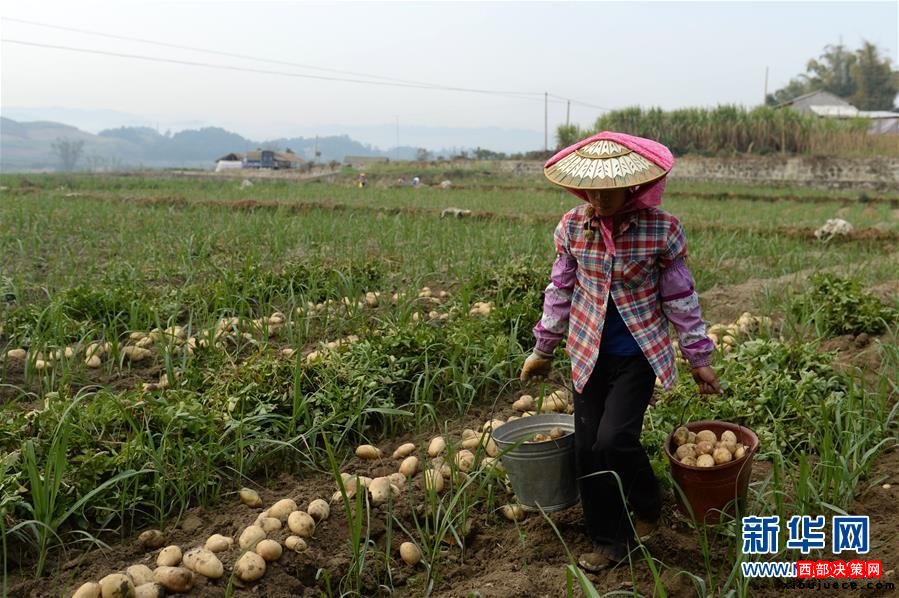 云南省德宏傣族景頗族自治州芒市軒崗鄉(xiāng)農(nóng)民提著采挖好的馬鈴薯準(zhǔn)備前去裝箱。當(dāng)?shù)伛R鈴薯每畝產(chǎn)值近6000元,是村民增收的主要途徑之一(2014年3月21日攝)。近年來,云南省大力推進(jìn)扶貧攻堅,走出了一條整村、整鄉(xiāng)、整縣、整州推進(jìn)的扶貧開發(fā)新路子。黨的十八大以來,以習(xí)近平同志為總書記的黨中央高瞻遠(yuǎn)矚、深謀遠(yuǎn)慮,以高度的政治感、使命感和責(zé)任感,把扶貧開發(fā)工作提升至治國理政新高度,廣泛凝聚社會各界力量,推進(jìn)實施精準(zhǔn)扶貧方略,為到2020年全面建成小康社會奠定堅實基礎(chǔ)。按照中央部署,通過產(chǎn)業(yè)扶持、轉(zhuǎn)移就業(yè)、易地搬遷、政策兜底等方式,到2020年將實現(xiàn)7017萬農(nóng)村貧困人口脫貧目標(biāo)。新華社記者 胡超 攝