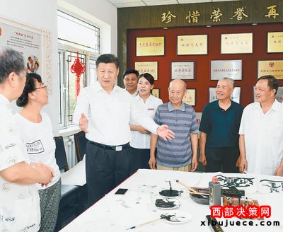 7月28日,中共中央總書記、國家主席、中央軍委主席習(xí)近平到河北唐山市調(diào)研考察。這是習(xí)近平在唐山市祥富里社區(qū)文化活動室勉勵正在進行書法繪畫的社區(qū)居民。