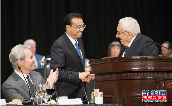 李克強(qiáng)表示,基辛格博士45年前訪華時(shí),中美貿(mào)易幾乎為零。45年后的今天,中美貿(mào)易額占全世界貿(mào)易總量的五分之一,中美經(jīng)濟(jì)總量之和占世界經(jīng)濟(jì)總量的三分之一。我們的貿(mào)易和投資量如此之大,自然難免有分歧摩擦,但我們之間的共同利益遠(yuǎn)大于誤解和分歧。我們正在進(jìn)行的雙邊投資協(xié)定談判就是向兩國(guó)工商界發(fā)出中美進(jìn)一步擴(kuò)大相互開(kāi)放和投資的積極信號(hào)。希望美方采取務(wù)實(shí)靈活態(tài)度,與中方共同努力達(dá)成高水平、互利共贏的雙邊投資協(xié)定。兩國(guó)可以通過(guò)更多貿(mào)易與人員往來(lái),坦誠(chéng)溝通,增進(jìn)理解與互信,推動(dòng)中美關(guān)系朝著穩(wěn)定向好的方向繼續(xù)前行。