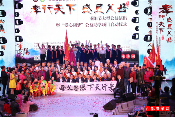 我國傳統(tǒng)的節(jié)日“九九重陽”也是“老人節(jié)”。值此佳節(jié)之際,在西安金翅鳥演藝隆重舉行了由陜西省民政廳指導(dǎo)、陜西省社會福利事業(yè)發(fā)展基金會攜手陜西省慈善協(xié)會聯(lián)合主辦;陜西省社會福利發(fā)展基金會主持人專項基金委員會、陜西賓悅文化傳媒有限公司承辦;以及陜西省社會福利事業(yè)發(fā)展基金會陜北力量專項基金委員會,陜西省社會福利事業(yè)發(fā)展基金會關(guān)公文化專項基金委員會,陜西省社會福利事業(yè)發(fā)展基金會陜北民歌專項基金委員會,陜西省社會福利事業(yè)發(fā)展基金會影視文化專項基金委員會聯(lián)合協(xié)辦的“孝行天下.感恩父母”大型公益演出暨“愛心圓夢”公益助學(xué)項目啟動儀式圓滿落幕。
