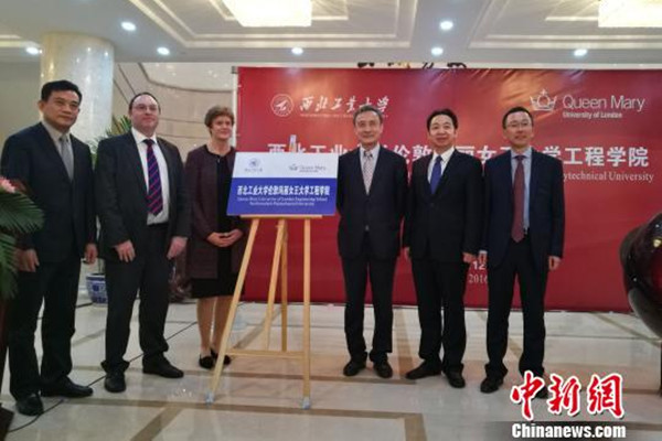 圖為西北工業(yè)大學倫敦瑪麗女王大學工程學院在西安揭牌。
