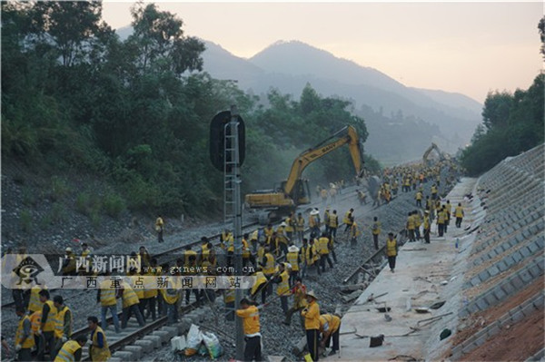 玉林市高鐵開通問題一直以來備受關(guān)注。12日,記者從南寧鐵路局了解到:10月11日凌晨,經(jīng)過2300多名鐵路施工人員5個(gè)多小時(shí)的連續(xù)作業(yè),黎湛鐵路電氣化改造工程貴港(根竹)至玉林段最后一處線路撥接施工順利完成。至此,該線路涉及的52處線路撥接改造全部完成,為今年底線路開通奠定了重要基礎(chǔ)。