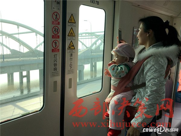 在試乘活動中,小妤成為了攝影師們的焦點。她一會兒看看左邊一會看看右邊,小手不停的揮舞??匆姅z影記者的鏡頭,一邊揮手還一邊咿咿呀呀,一點也沒有怯場。據(jù)地鐵工作人員介紹,目前小妤是三號線最小的乘客。