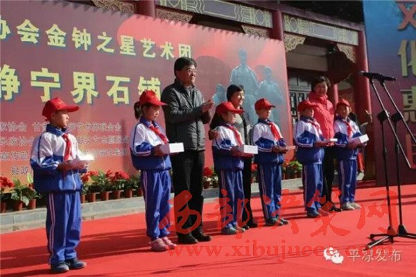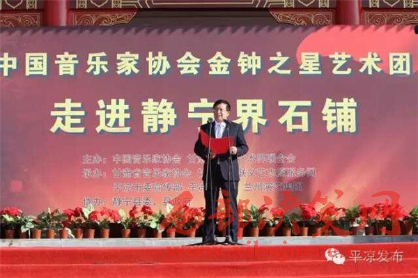 市委書記鄭亞軍致辭,慰問演出活動由靜寧縣委書記王曉軍主持。鄭亞軍指出,平涼是一個古老而又神奇的地方,更是一塊紅色的熱土。1935年8月到1936年10月,紅一、二、四方面軍和紅二十五軍全部過境平涼,紅色足跡遍及平涼七縣區(qū)。界石鋪作為紅軍三大主力靜會地區(qū)會師的“中心基地”,是紅軍長征途徑的主要地區(qū),留下了毛澤東、周恩來、張聞天等五位黨和紅軍領導人,開國十大元帥中的九位元帥,十大將軍中的八位將軍,還有57位上將中的47位、177位中將中的161位、千余位少將和數(shù)萬紅軍將士的歷史足印,在中國革命史上具有重要的歷史地位,發(fā)揮了重要的作用。