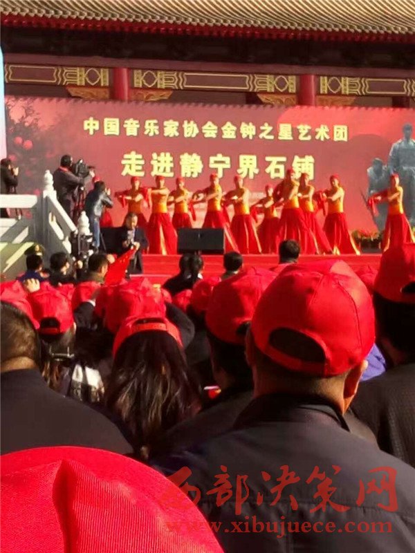 11月3日,在全國上下認真學習貫徹黨的十八屆六中全會精神、隆重紀念紅軍長征勝利80周年之際,由中國音樂家協(xié)會、甘肅省文聯(lián)主辦,甘肅省音樂家協(xié)會、甘肅省文聯(lián)文藝志愿者服務團、平涼市委宣傳部、平涼市文聯(lián)承辦,靜寧縣委、縣政府協(xié)辦的“長征精神代代傳——中國音協(xié)金鐘之星藝術團‘送歡樂·下基層’慰問演出活動”在靜寧縣界石鋪紅軍長征毛澤東舊居紀念館演出。