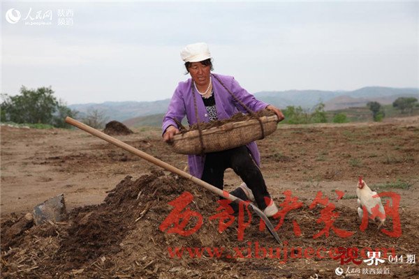 楊老師在自家門前的平地里撒糞準備種上洋芋。