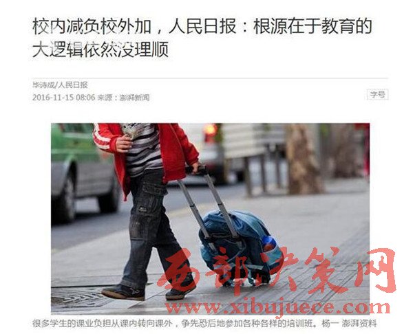 是學校錯了嗎?學校響應行政命令,給學生減負。這幾年學生的課業(yè)負擔從校內(nèi)轉(zhuǎn)到校外,從側(cè)面說明減負也有了一定成效。