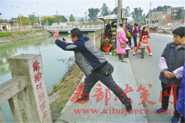曾勇跑到離家最近的一個(gè)階梯處,走下階梯,發(fā)現(xiàn)甘先生根本夠不著竹竿。他繼續(xù)往前跑,第二個(gè)階梯處,他目測(cè)發(fā)現(xiàn),雖然甘先生離河岸近一些了,但依然夠不著,只好加速往下游跑。