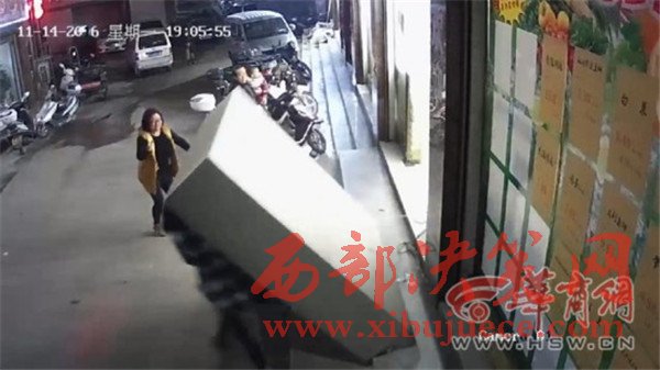 11月11日,安康市江北一家水果超市門前發(fā)生一起慘劇。一位帶著孩子的女士打開儲(chǔ)物柜取物品時(shí),鐵質(zhì)儲(chǔ)物柜突然倒下,母子倆都被砸中。其中6歲男童頭部受傷大量出血,送醫(yī)后不幸身亡,母親右腿骨折,仍在治療中。