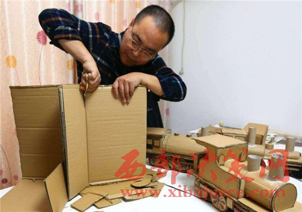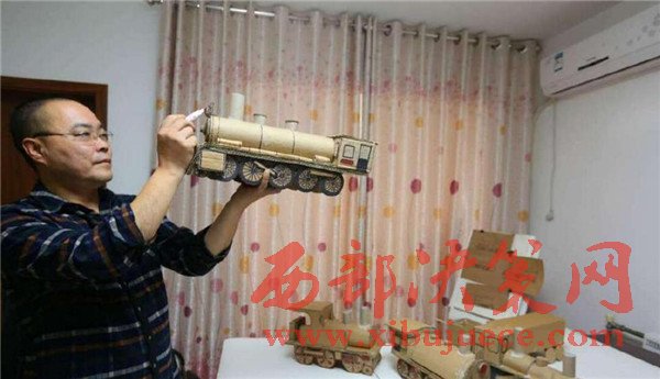 【廢舊紙箱變成精美的老式“蒸汽火車”】廢舊紙箱、紙盒能做什么呢?大多數(shù)人都會把它當(dāng)成廢品賣掉了,而市民王小龍卻變廢為寶地將其制作成了4個(gè)精美的老式“蒸汽火車”。11月20日,記者來到丈八北路附近的王小龍家中,剛下班的他顧不上休息,已經(jīng)在工作臺前做起微型“蒸汽火車”的車廂,已經(jīng)做好的4個(gè)微縮版的老式“蒸汽火車”醒目地?cái)[在桌子上,讓人眼前一亮。這些“蒸汽火車”全是用廢舊的紙箱、紙盒手工制作,司機(jī)室、鍋爐、煙囪、大燈、車輪等,樣樣都有。