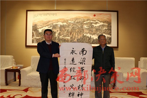 西部決策網(wǎng)訊(帥華鋒 杜杰 通訊員 趙高銪)11月21日,原全國政協(xié)常委、國家林業(yè)部常務副部長劉廣運,國家林業(yè)局老干局副局長、中國林業(yè)書法家協(xié)會副秘書長王德宗,人民日報海外版書畫藝術(shù)部主任助理、人民書畫藝術(shù)網(wǎng)外聯(lián)部副主任陳厚學一行,在慶陽市林業(yè)局、華池縣人民政府副縣長池軍以及南梁紅色景區(qū)建設管理局辦公室主任張全鈺、南梁革命紀念館館長聶明靜的親切陪同下,踏上陜甘邊革命根據(jù)地“紅色南梁”這片革命的熱土。