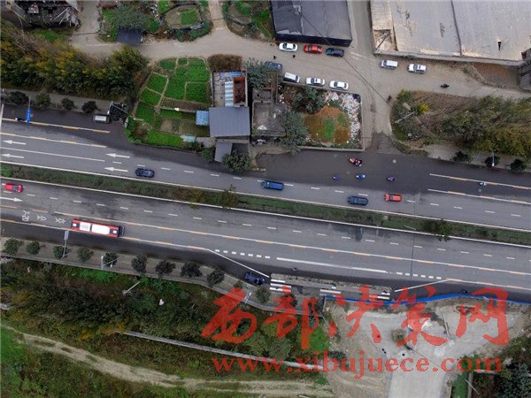 這棟房子屋前的院壩、自留地占據(jù)了進(jìn)方向的兩條車道。2008年擴(kuò)建這條路之前,這棟民房就已經(jīng)立在這里,至今已有8年時(shí)間。