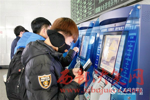 12月15日,旅客在包頭站自助售票機(jī)購(gòu)票。