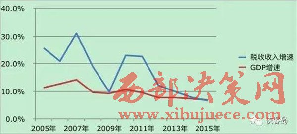 島妹整理了過去十年的稅收收入增速與GDP增速,趨勢(shì)大體一致。但在絕大多數(shù)年份,稅收增速都遠(yuǎn)高于GDP增速。例如,2010年后的5年,經(jīng)濟(jì)增速下滑, 下行壓力增大,企業(yè)也遭遇了成本升高、利潤(rùn)下降的現(xiàn)實(shí)困境,然而除了稅收收入增速依然高于GDP增速,直到去年,隨著大量企業(yè)盈利能力繼續(xù)下降、經(jīng)濟(jì)“脫 實(shí)向虛”的問題更為嚴(yán)重,稅收收入增速才略低于后者0.3個(gè)百分點(diǎn)。