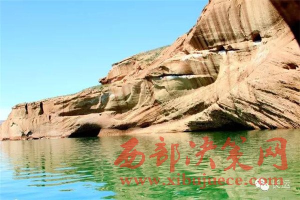 靖邊八景之一的“紅崖曉鏡”就在現(xiàn)在的水上丹霞的位置。靖邊縣志記載,“在杜家大臺(tái)兩岸,紅峽對(duì)峙,中留一線,曉日初升,恍是高樓仙境”。這里過去叫草溝灣,曾是水草豐美,水鳥棲息,水清如鏡,兩岸赤壁對(duì)峙,為靖邊的一大景觀。