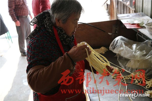 問賀玉蘭老人做得一碗好面有啥竅門,賀玉蘭老人說:“有啥竅門?實實在在做就成,一個是面要揉好、揉成光光亮亮的軟面團,揉好的面醒2個小時后就可以搓成粗條子盤放在盆子里,一層層碼放,刷上菜籽油,一個是防止面粘在一起,另外也能使面口感更爽滑,盤放好后再醒2個小時。”