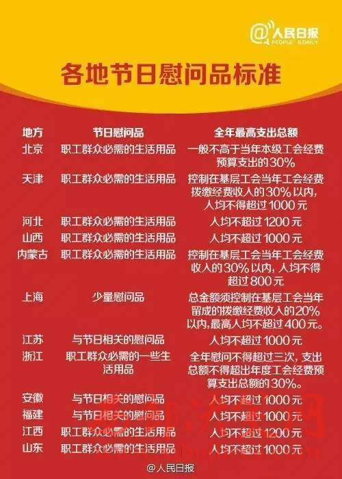 既然標(biāo)準(zhǔn)是由省級(jí)工會(huì)確定,那各省份的具體標(biāo)準(zhǔn)又是什么?一起來看: