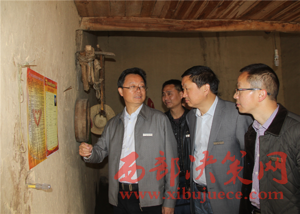 縣委書記梁濤在貧困戶家中調(diào)研(左二為梁濤)