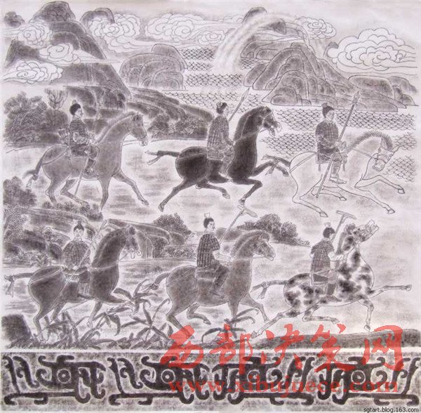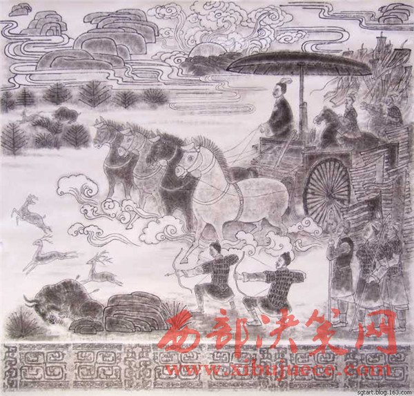 “永不滿足是前進(jìn)的動(dòng)力”。為了更直觀地表達(dá)石鼓文,他發(fā)揮自己書畫的藝術(shù)天賦,潛心研究,又創(chuàng)作出了十幅《石鼓文圖》。它以中國傳統(tǒng)繪畫形式每幅畫于八尺宣紙,各件既是單幅作品,又互相關(guān)聯(lián),洋洋巨著,連接在一起近乎三丈,氣勢(shì)恢弘,再現(xiàn)了十面石鼓的原始?xì)v史景象,再現(xiàn)了先秦時(shí)期政治、軍事和民眾生活、飛禽走獸和自然風(fēng)光。對(duì)人們了解、研究先秦歷史必將產(chǎn)生積極的輔助作用。