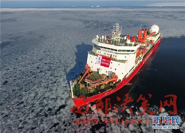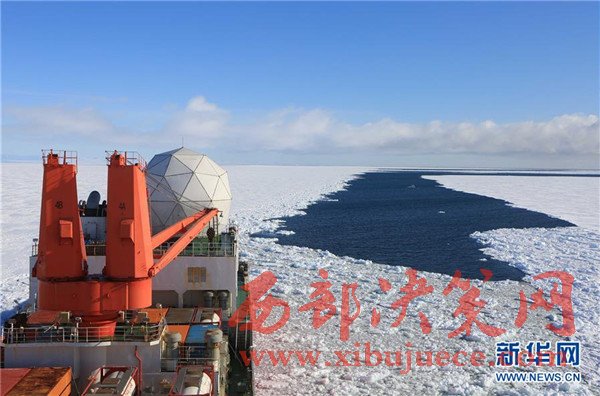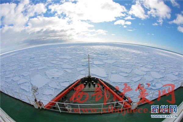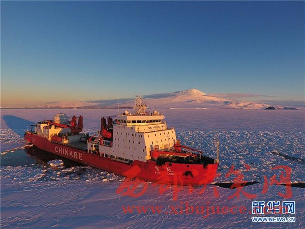 破冰前往麥克默多灣方向的“雪龍”號(hào)科考船(2月9日攝)。