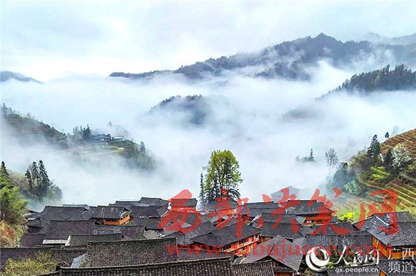 3月12日,廣西龍勝各族自治縣龍脊鎮(zhèn)小寨村雨后云霧繚繞。當?shù)氐牡跄_樓、梯田、古樹和簇擁綻放的李花在云霧中若隱若現(xiàn),宛如一幅美麗的山村水墨畫映入眼簾,讓人賞心悅目。
