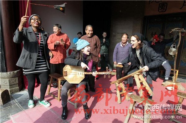 11月15日,北京大學(xué)燕京學(xué)堂的丹麥、以色列等42個國家的100多名外國留學(xué)生,來到西安了解中國傳統(tǒng)文化和城市發(fā)展及變化,在關(guān)中民俗藝術(shù)博物院,“老外”對華陰老腔產(chǎn)生濃厚興趣,現(xiàn)場向老藝人學(xué)唱華陰老腔。