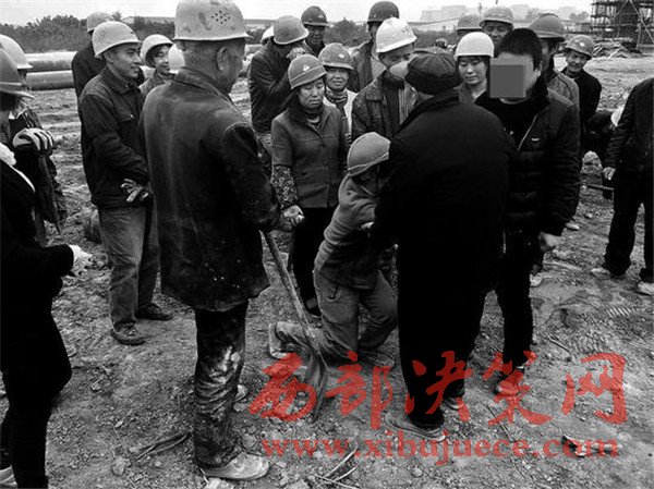 “大爺大媽,我給您跪下了,求求您們了,就讓我們干吧!”就在記者準(zhǔn)備找工地負(fù)責(zé)人了解情況時,一男一女兩位農(nóng)民工突然撲通一聲跪倒在地,抓著其中一位老人的手哭著求情。“我們大伙都給您們跪下了,我們都是下苦人不容易……”看到有人跪地求情,其他農(nóng)民工也齊刷刷跪倒在阻擋者中的兩位老人面前,哭求開恩讓他們干活養(yǎng)家糊口。突如其來的變故,讓阻擋施工的5個人頓時慌了手腳。