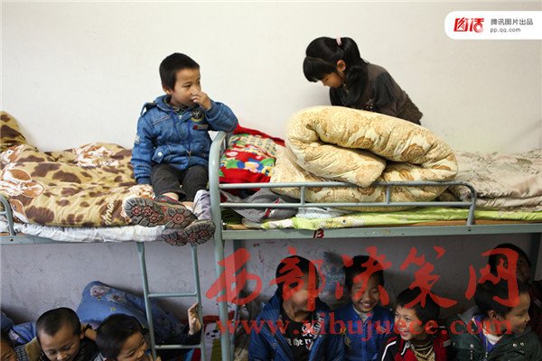 教育公益組織歌路營的數(shù)據(jù)顯示我國基礎(chǔ)教育階段寄宿制學(xué)生數(shù)量達(dá)3276萬,其中60%是留守兒童。2015年,歌路營發(fā)布了《中國農(nóng)村住校生調(diào)查報(bào)告》,在走訪了幾百所農(nóng)村寄宿校后,報(bào)告用“擠、險(xiǎn)、臭”來形容農(nóng)村孩子糟糕的住宿環(huán)境。圖為2012年11月,浙江松陽縣大東壩鎮(zhèn)中心學(xué)校,住校的人太多床鋪緊張達(dá)不到一人一床的標(biāo)配,常常安排兩個(gè)孩子睡在一起。