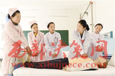 3月20日,青海省黃南藏族自治州職業(yè)技術(shù)學校護理系老師李美榮(右二)在給學生講授心肺復蘇方法技巧。