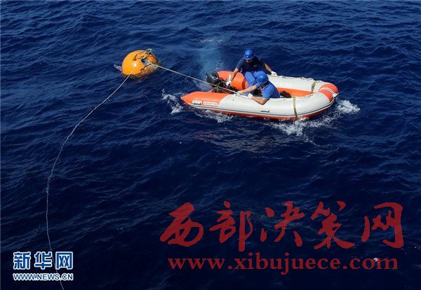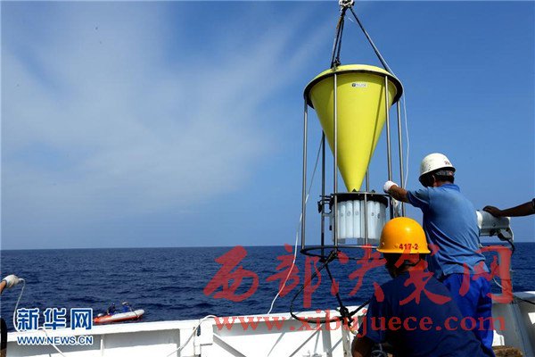 5月1日,科考隊員布放沉積物捕獲器,進行常規(guī)科學調查。