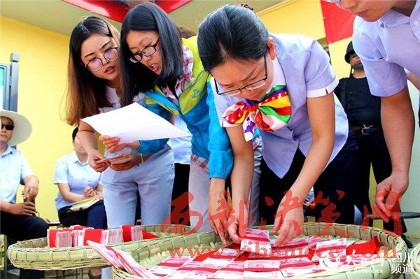 分紅開始前,工作人員再次核對(duì)貧困戶家庭名單。