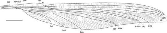 由于蜻蜓化石保存非常困難,這次發(fā)現也和之前發(fā)現的蜻蜓化石一樣,只有翅膀部分得以相對完整的保留。根據對翅膀的研究發(fā)現,它擁有獨特而古老的脈絡,因此才得以確定它是一個新科。