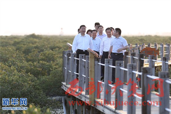 4月19日至21日,中共中央總書記、國(guó)家主席、中央軍委主席習(xí)近平在廣西考察。這是4月19日傍晚,習(xí)近平來到北海金海灣紅樹林生態(tài)保護(hù)區(qū)考察。(記者 謝環(huán)馳 攝)