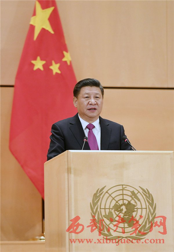 2017年1月18日,國家主席習(xí)近平在瑞士日內(nèi)瓦萬國宮出席“共商共筑人類命運共同體”高級別會議,并發(fā)表題為《共同構(gòu)建人類命運共同體》的主旨演講。(記者 饒愛民 攝)