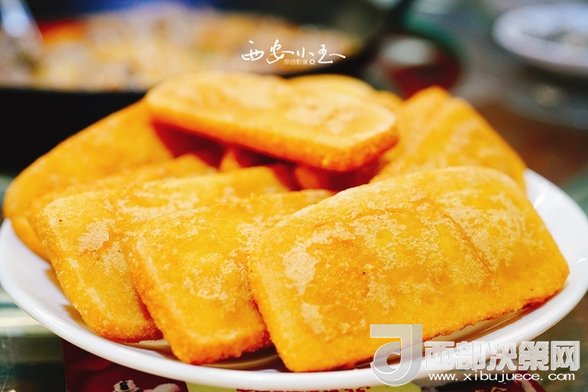 再來(lái)一份糜子糕,告訴成都的小伙伴,《舌尖上的中國(guó)》里介紹過(guò)的黃饃饃,跟這個(gè)一樣,都是用糜子做的。外焦里糯,香甜美味。