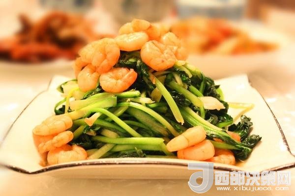 主料:蝦仁150個(gè),塔菜1棵
