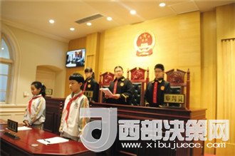 模擬法庭上,學(xué)生們演繹真實校園案件。
