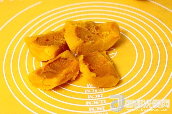熟甘薯南瓜250g、面粉350g、白砂糖20g、酵母4g、水少許、蜜豆適量。