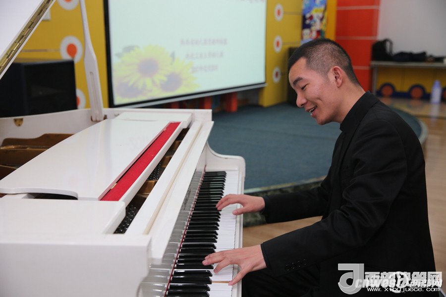 陜西師范大學幼兒園的韓凱帶來鋼琴演奏《一壺美酒》。