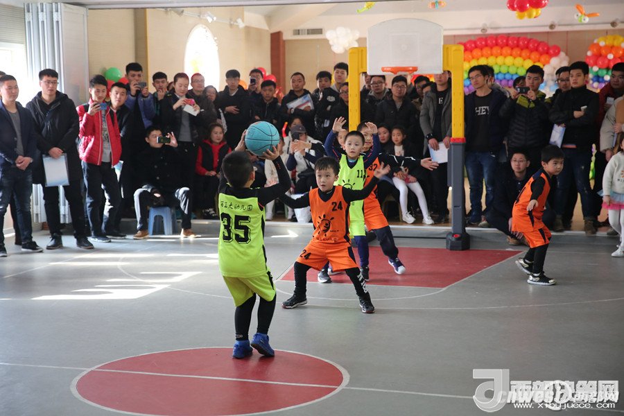 西北工業(yè)大學幼兒園教師董樂帶領小朋友展示籃球教學活動。