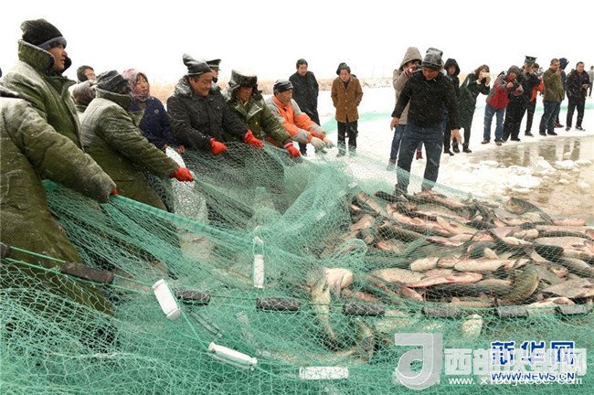 寒冬時節(jié),內(nèi)蒙古巴彥淖爾市杭錦后旗鴻雁湖進(jìn)入冬季捕魚季,湖面上呈現(xiàn)出一派“人歡魚躍”的豐收景象。