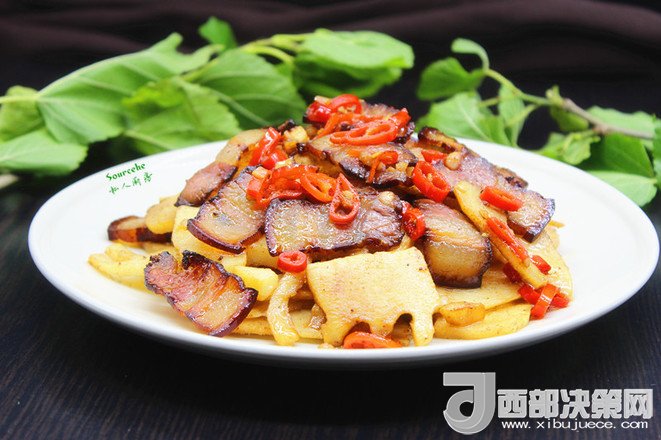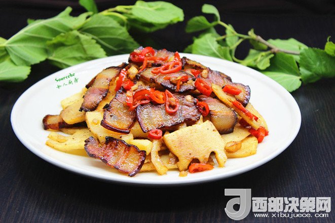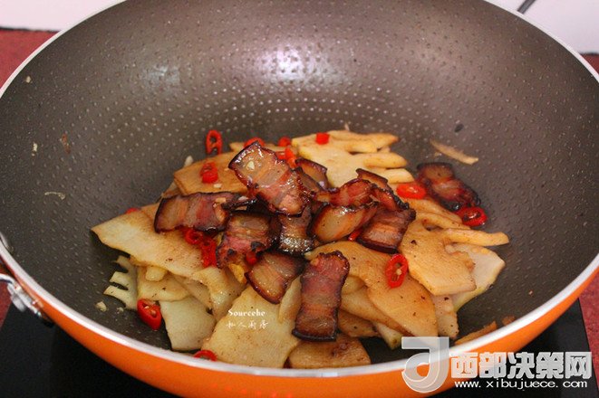 4.熱鍋,倒油,小火煎臘肉至熟,起鍋;