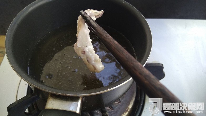5.把蝦放入熱油里炸變色撈出