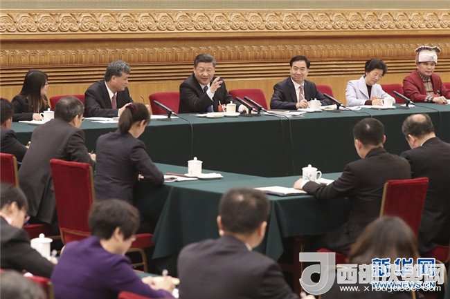 3月7日,中共中央總書記、國家主席、中央軍委主席習(xí)近平參加十三屆全國人大一次會(huì)議廣東代表團(tuán)的審議。 新華社發(fā)(盛佳鵬 攝)