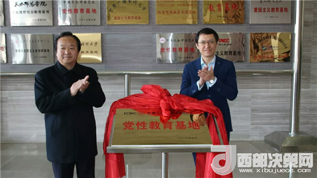 兩當(dāng)兵變紀(jì)念館館長(zhǎng)王廷君,中國工商銀行甘肅省分行黨委委員、副行長(zhǎng)鄭允弢為“黨性教育基地”揭牌。