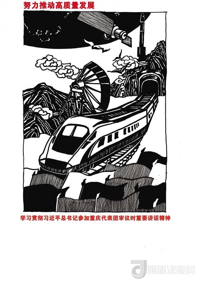 “每一個畫面,每一個細節(jié)都凝聚了師生們的心血。”版畫系副主任韋嘉介紹,13日上午,學院組織召開了黨委理論學習中心組(擴大)會議,專題學習習近平總書記參加重慶代表團審議時重要講話精神。會后,校黨委書記黃政、校長龐茂琨、校黨委副書記左益、學校宣傳部部長賈安東、學校思政部主任陳勇、版畫系黨總支副書記陳斌等人對文字方案進行了反復討論,最終確定了相關主題。16名學生和版畫系9名教職工黨員當晚便開始參與作品創(chuàng)作。