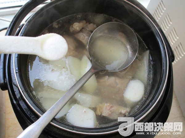 6.等時間到能打開后開蓋把白蘿卜加入,嘗試味道后加鹽調(diào)味,再壓5分鐘即可