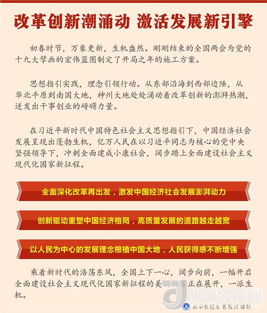 “我們要以更大的力度、更實(shí)的措施全面深化改革、擴(kuò)大對外開放,貫徹新發(fā)展理念,推動經(jīng)濟(jì)高質(zhì)量發(fā)展,建設(shè)現(xiàn)代化經(jīng)濟(jì)體系,不斷增強(qiáng)我國經(jīng)濟(jì)實(shí)力、科技實(shí)力、綜合國力,讓社會主義市場經(jīng)濟(jì)的活力更加充分地展示出來。”習(xí)近平總書記在十三屆全國人大一次會議上的重要講話,再次發(fā)出了全面深化改革的號召。