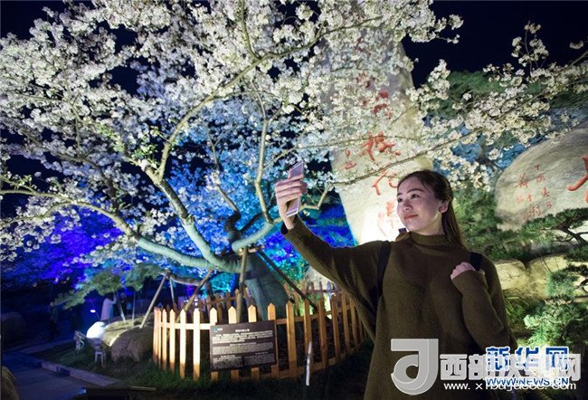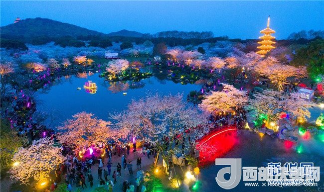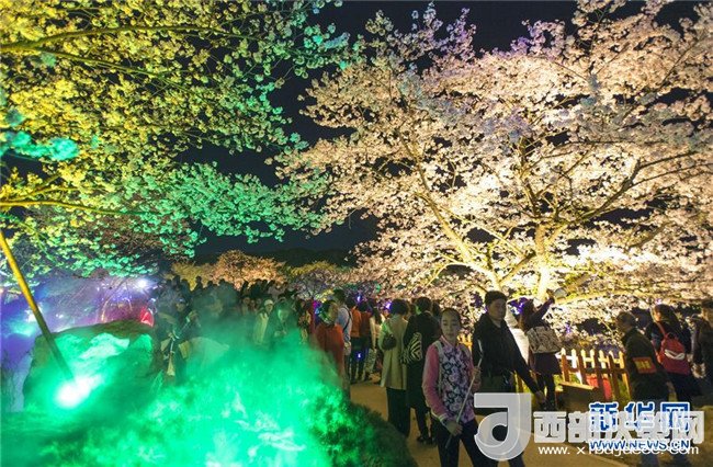 近日,武漢東湖櫻花園的櫻花競(jìng)相綻放。園區(qū)還在夜間開(kāi)啟裝飾燈光,供游客在夜色中觀賞,吸引大量游客前來(lái)踏春賞花。 新華社記者 熊琦 攝